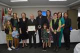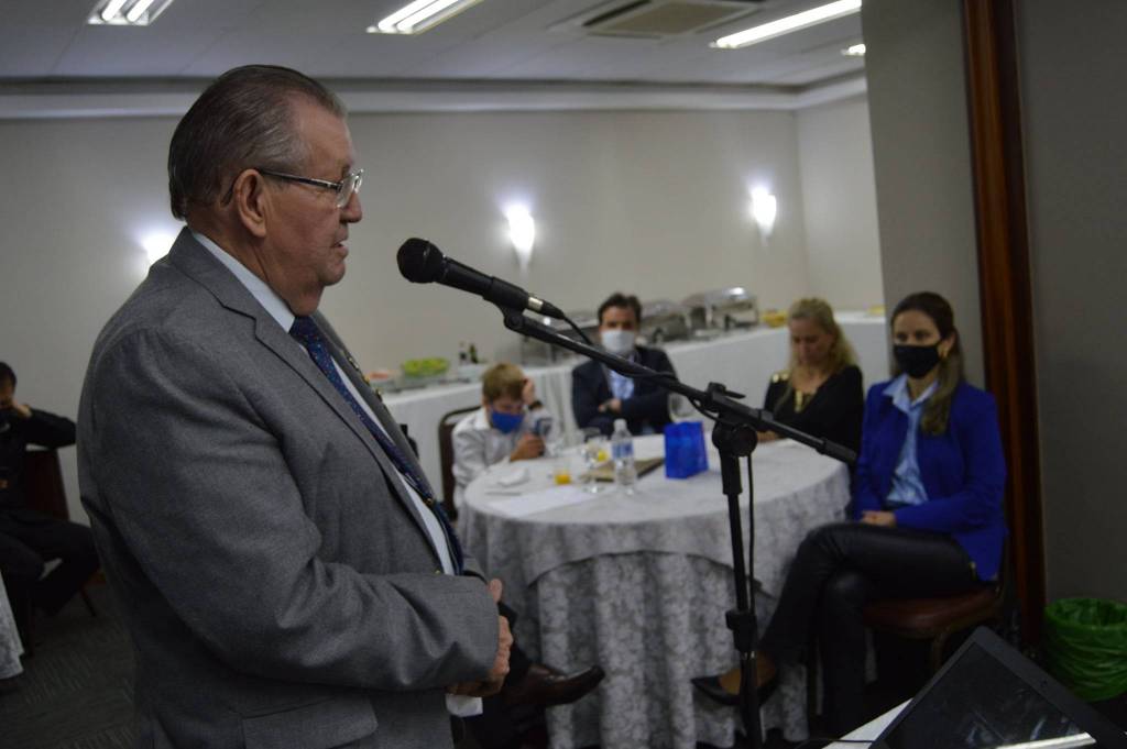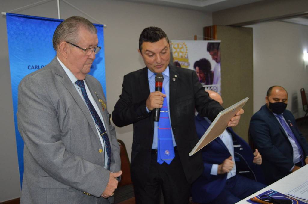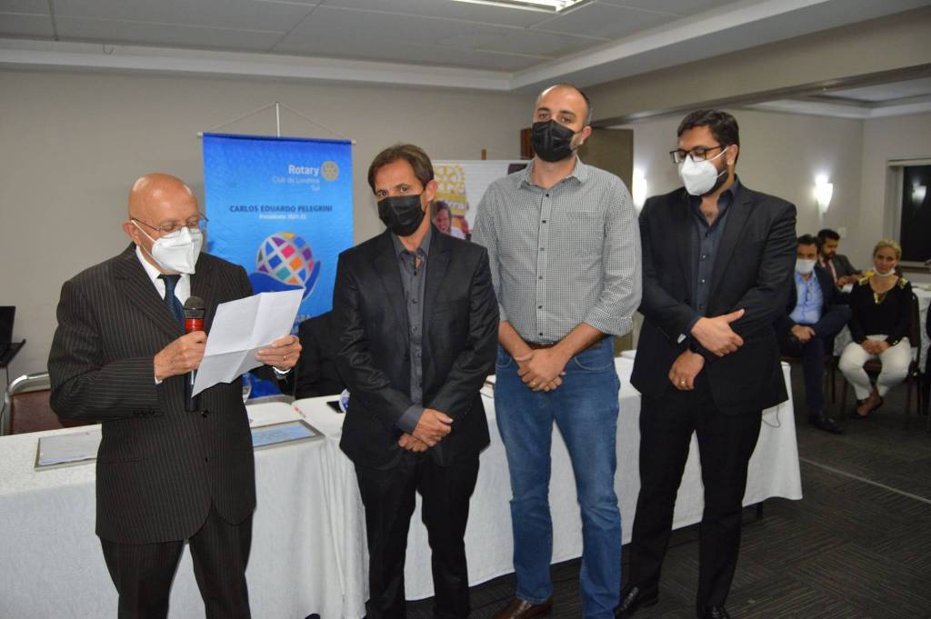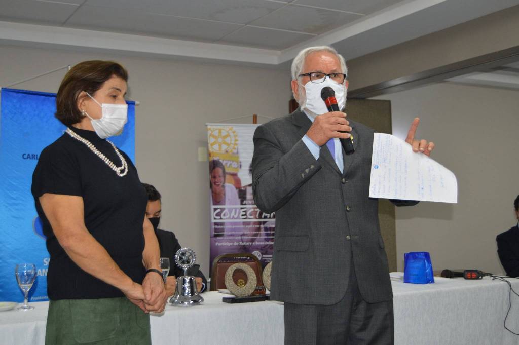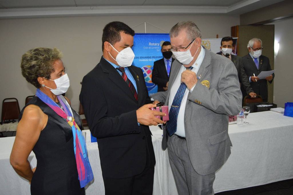 Ainda nos momentos de homenagens, o Presidente Carlos lembrou que em todos os anos o Rotary Club de Londrina-Sul homenageia uma instituição filantrópica e um advogado e/ou um escritório jurídico de destaque na cidade. Os troféus levam o nome e a memória de companheiros que participaram da fundação e história do Clube. Na ocasião os homenageados foram: o Comitê de Solidariedade dos Funcionários da Sercomtel, recebendo o “Troféu Osvaldo Cazarin de Freitas”, na premiação de instituição filantrópica e Luiz Carlos Freitas, da ORCASP – Contabilidade e Administração de Condomínios, que recebeu o “Troféu Naylor André das Chagas Lima”, na premiação de advogado e/ou escritório jurídico.
