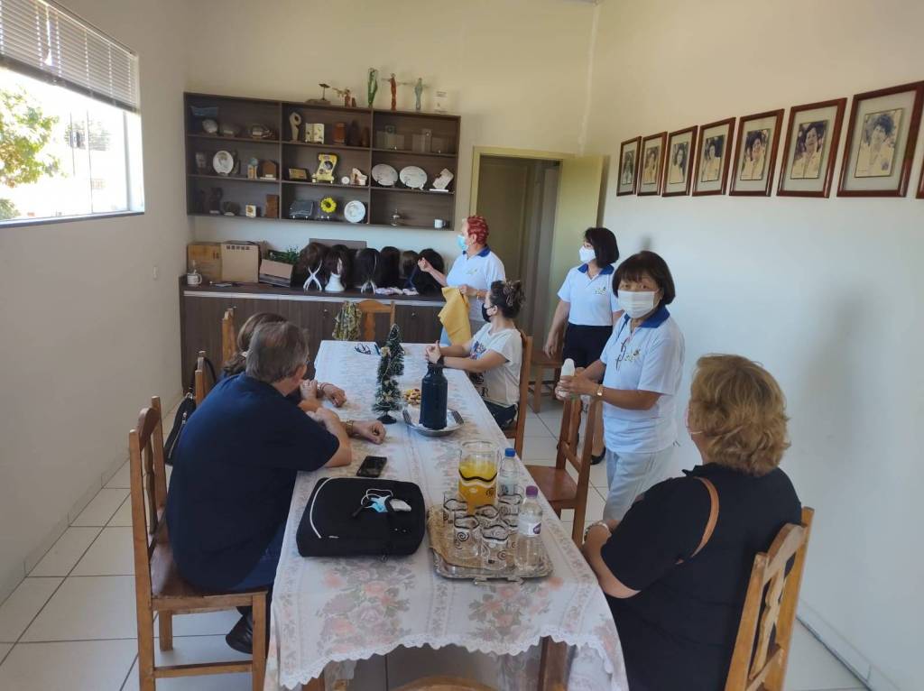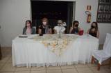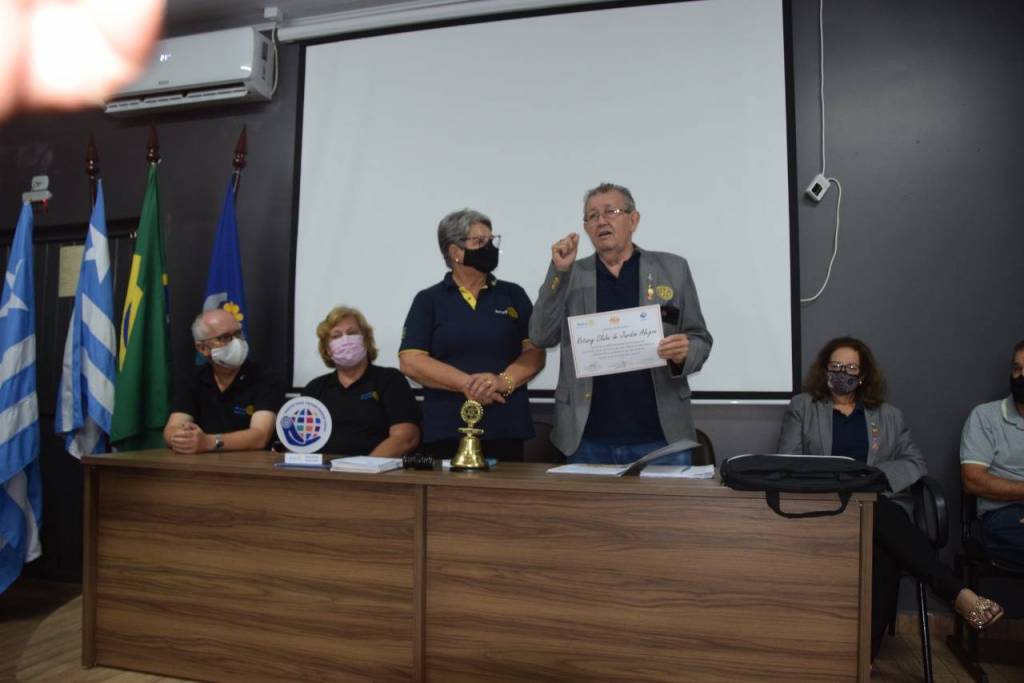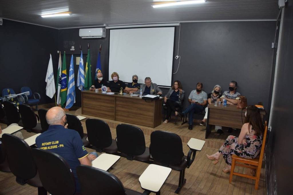Pela manhã o casal governador seguiu para Jardim Alegre, onde foi recepcionado com um delicioso café, pelo Governador Assistente do Grupo 12 e também Governador Indicado 2023/2024, Arthur Harbs, pelo Governador Assistente do Grupo 11, Celestino Alves de Souza Junior, pela Presidente 2021/2022 do Rotary Club de Jardim Alegre, Rosângela Rossato Pachulski e sua equipe, na sede da APAE, uma vez que o clube, recém criado, ainda não possui sede própria. A reunião contou com a presença de vários companheiros e autoridades municipais, como o Prefeito José Roberto Furlan, o Vice-Prefeito Moises Lenotovz, o vereador Rubens Vanderlei de Castro e ainda a Secretária de Saúde Priscila Boggo. Após as boas-vindas ao casal pela presidente Rosângela, o Governador Paulo Balla expôs, como vem sendo de praxe em suas visitas, os projetos da gestão, constantes de seu Plano de Ação, parabenizou o clube e os companheiros pela excelente gestão até o momento e convidou a Companheira e sua esposa Aureliana para discorrer sobre o tema destaque do momento o projeto “Empoderamento das Meninas”.