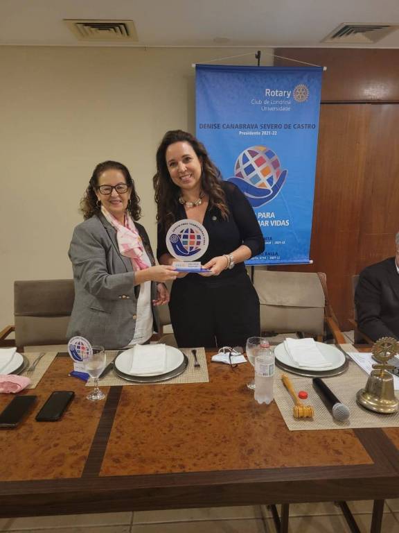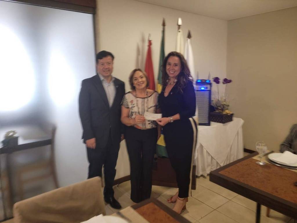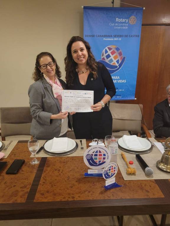 Após o início solene da reunião, e Presidente Denise fez a entrega solene de recursos advindos de ações do clube, em prol do Cei Alegria, do Lar Anália Franco e do Hospital do Câncer de Londrina. As ações reverteram também recursos para a Fundação Rotária.