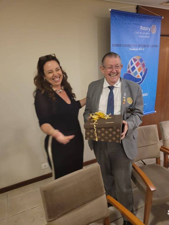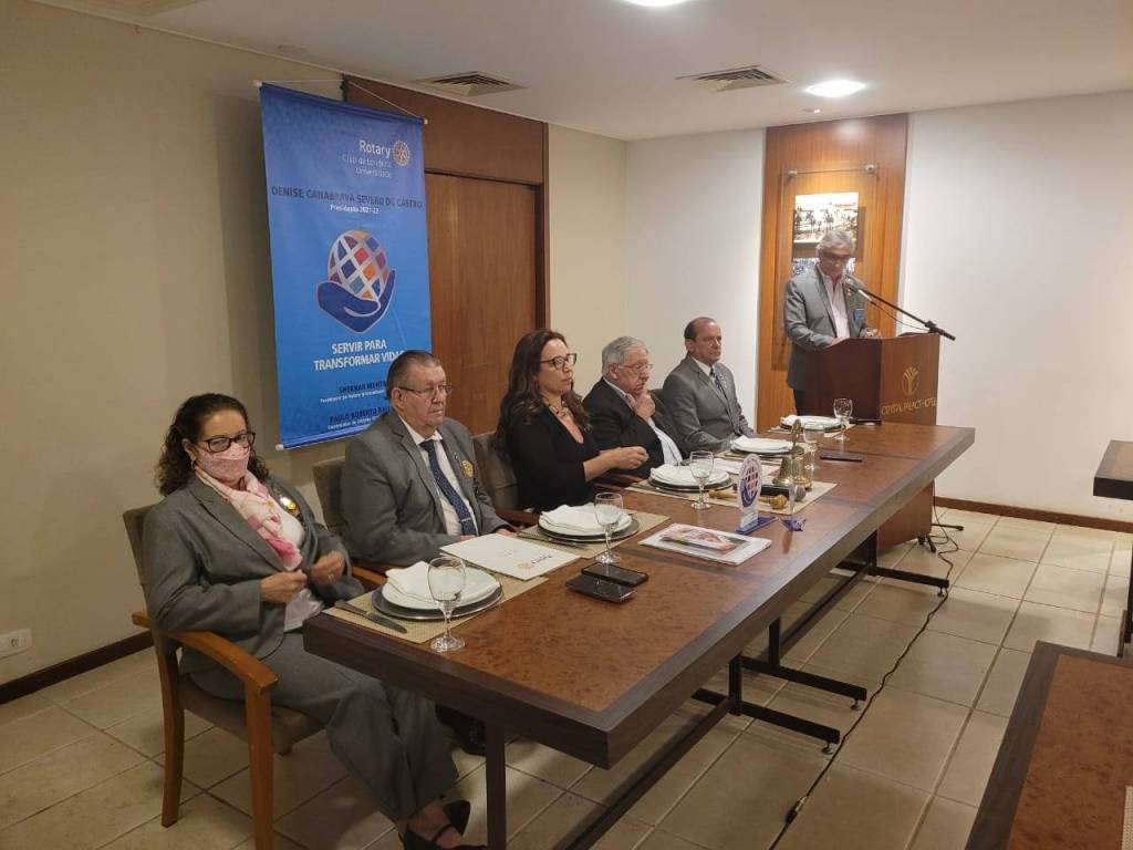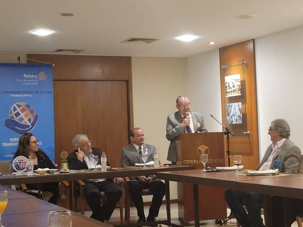 Dia 03 de dezembro passado, o Rotary Club de Londrina – Universidade realizou uma bonita e concorrida festiva para marcar a Visita Oficial do Governador 2021/2022. Paulo Roberto Balla. Na ocasião o Governador e sua esposa, a Primeira Dama Aureliana Aparecida Balla, foram recepcionados pela Presidente 2021/2022, Denise Canabrava, pelo Governador 2002/2003, José Pelayo Sanches, pelo Governador 2015/2016, Adelino Felipe de Azevedo, pelo Governador 2020/2021, Ricardo Slomski, pelo Governador Indicado 2023/2024 e Governador Assistente do Grupo 12, Arthur Harbs, pela Governadora Assistente do Grupo 07, Maria do Carmo Lopes Paes Landin e pelo Governador Assistente do Grupo 06, José Antônio Cavicchioli. Prestigiaram também a reunião, o Presidente da Comissão Distrital de Interact 2021/2022, Almir Rogério Lopes Franciscão e ainda diversos companheiros e companheiras do Rotary Club de Londrina – Universidade e de outros clubes da cidade.