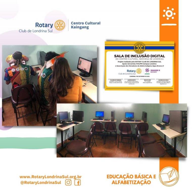 Pensando nisso e dialogando com os indígenas Kaingang de Londrina, o Rotary Club de Londrina Sul fez a entrega, no último dia 9, da sala de inclusão digital do Centro Cultural Kaingang, localizado na rua Pedro Antônio da Silva, 100, esquinda com a Av. Dez de Dezembro na região central de Londrina.