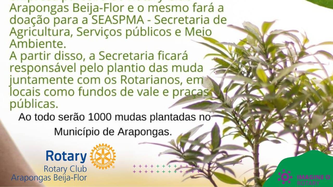 As mudas serão doadas por uma empresa parceira do Rotary Club Arapongas Beija Flor e o mesmo fará a doação para a SEASPMA - Secretaria de Agricultura, Serviços públicos e Meio Ambiente.
