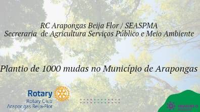 As mudas serão doadas por uma empresa parceira do Rotary Club Arapongas Beija Flor e o mesmo fará a doação para a SEASPMA - Secretaria de Agricultura, Serviços públicos e Meio Ambiente.
