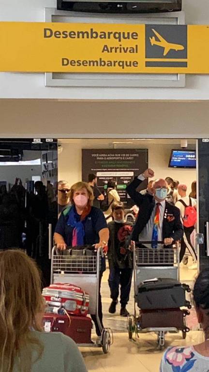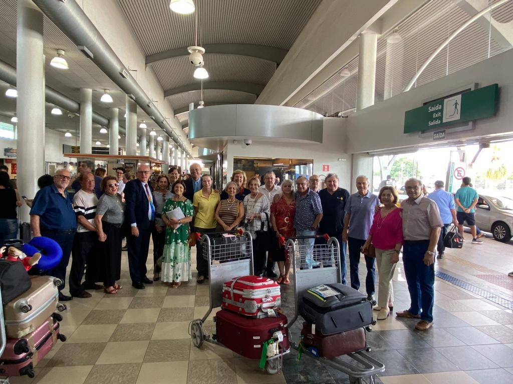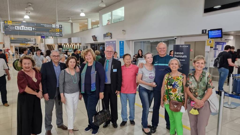 O embarque para a viagem foi no aeroporto de Londrina e antes do embarque, o casal foi recepcionado pelo Colégio de Governadores do Distrito 4710, rotarianos do Londrina Sudeste e de outros clubes. O retorno, ocorrido no dia 14, teve repeteco, incluindo o Governador 2022-23, Paulo Roberto Balla e sua esposa Aureliana Balla. A fotos são de Anibal Vieira e de presentes no embarque e no retorno.