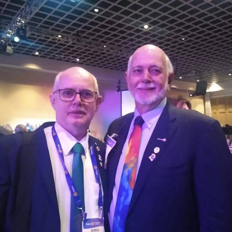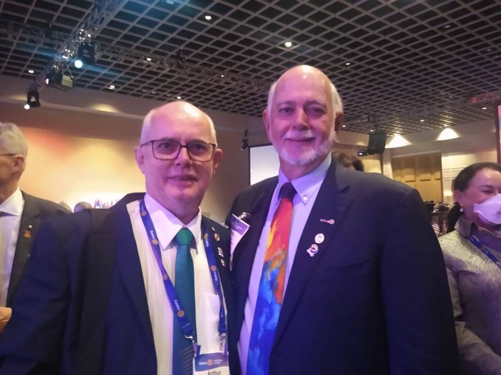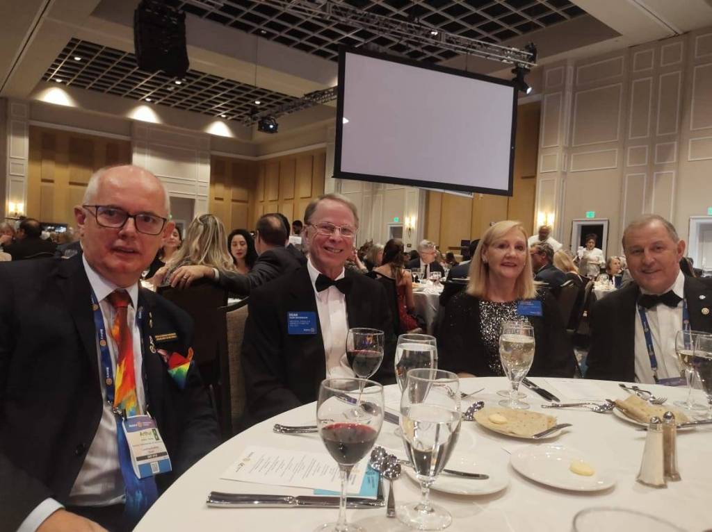 O Governador Eleito 2023-24, Arthur Harbs e sua esposa Veronica Ruhmann Harbs embarcaram em viagem para Orlando, na Flórida/EUA, para a participação na Assembleia Internacional do Rotary e treinamento para governadores. A participação nesse evento é uma das obrigações do governador eleito para poder assumir o cargo e após essa participação, compartilhar os conhecimentos adquiridos com todos os companheiros do distrito. A assembleia deste ano foi a primeira a ser realizada presencialmente após a pandemia de covid-19 e é, segundo o próprio Arthur Harbs, um momento mais marcante ainda, do que já costuma ser para os dirigentes que dela participam. Segundo o Governador Arthur, os encontros, os treinamentos e conhecimentos adquiridos, o companheirismo com os demais governadores brasileiros, com os presidentes passados e com o atual presidente, são momentos que marcam a gestão desde o princípio. “É um gás, um combustível essencial para a missão que desempenharemos na gestão 23/24”, disse ele. “E o encontro com o presidente de nossa gestão, o companheiro Gordon McInally, é uma oportunidade única, pois isso nos motiva e nos dá a certeza de que temos junto a nós, de maneira acessível e eficaz, a nossa maior liderança”, acrescentou Harbs. Eleito para a Governadoria do Distrito 4710 na gestão 2023/2024, Arthur Harbs é associado do Rotary Club de Londrina - Sudeste, e comandará o distrito a partir de 01 de julho de 2023.